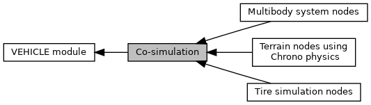 The vehicle co-simulation module provides an MPI_based framework for co-simulating a multibody system representing a wheeled or tracked mechanism with various terrain models and optionally various tire models. It implements a 3-way explicit force-displacement co-simulation approach. The three different types of nodes present in a co-simulation are as follows: